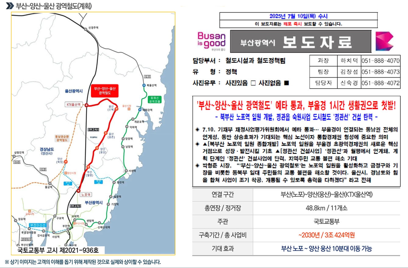 2030년 개통 목표, 더욱 가까워진 부산,울산 생활권