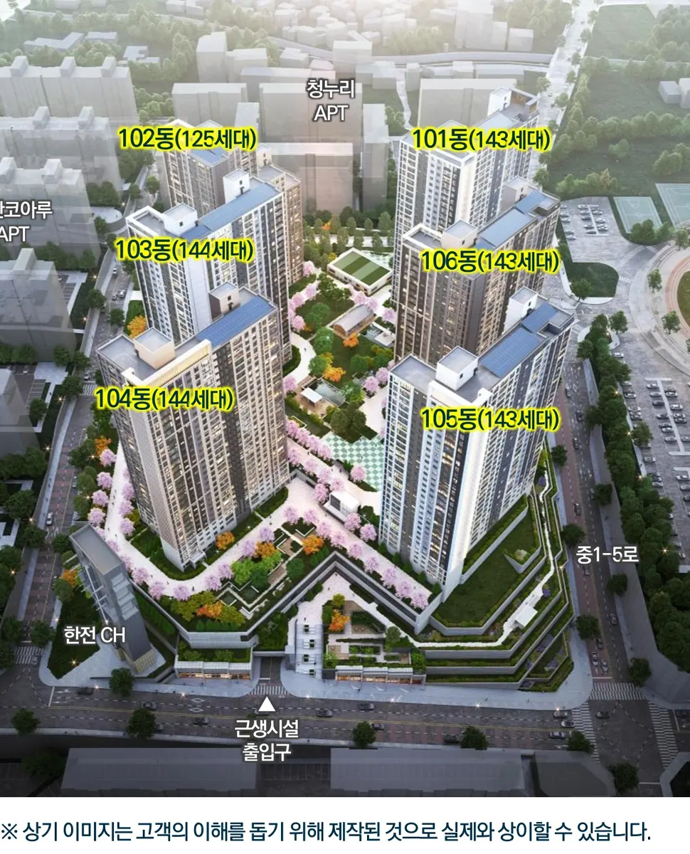 | 규모 | 지하2층~지상18~29층, 6개동 총842세대 | |